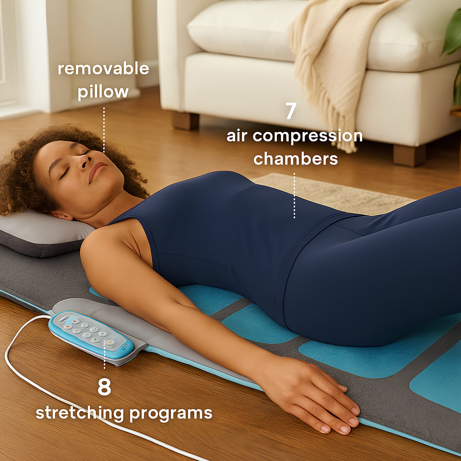 the Air Compression Back Stretching Mat — a guided, at-home stretching session that feels like a slow, controlled yoga flow.