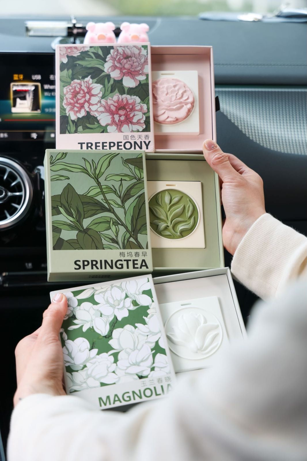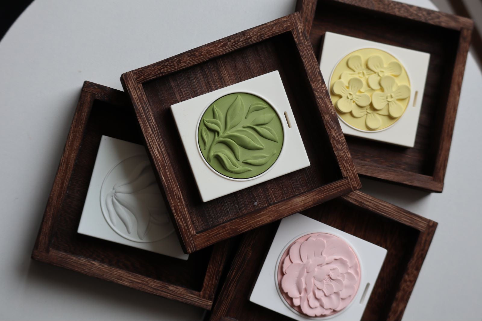 Each design prototype is carved by a senior Chinese carving teacher using the Eastern seal carving technique, purely handmade. The flower patterns are vivid and charming, and the three-dimensional carving design restores Eastern aesthetics, making this series of fragrance pendants a work of art.